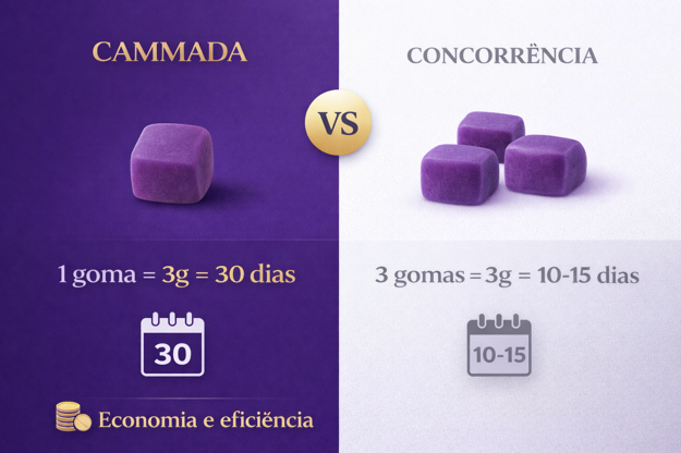 A maioria das marcas entrega gomas subdosadas com 1,5 gramas por goma e para obter o 3g diário (recomendado), você precisaria comer 2 ou 3 gomas por dia, fazendo com que o pote durasse apenas 15 dias. No fim das contas, você paga caro por pouco resultado.